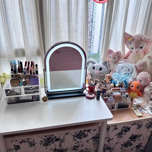 Arched LED Makeup Mirror with Touch Dimming & 10x Magnification, Hollywood Mirror
