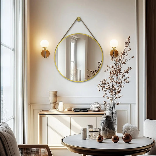 Round Black & Golden Wall Mirror – Decorative Vanity Mirror for Bathroom, Living Room and Bedroom Dressing Table