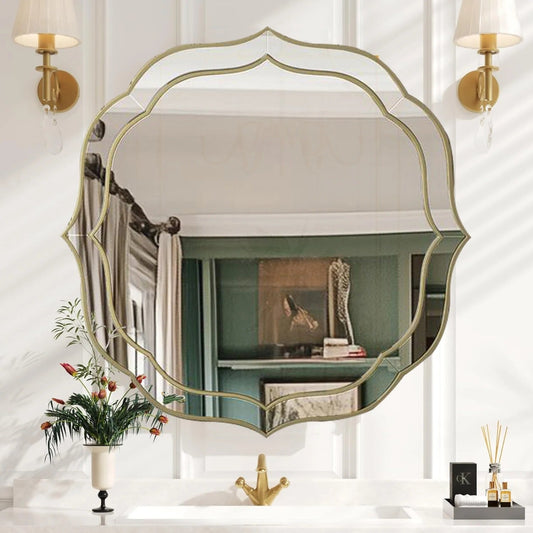 Modern Decorative Bathroom Mirror – Venetian-Style Silver Glass Mirror with Golden Rim & Beveled Frame for Bedroom & Hallway