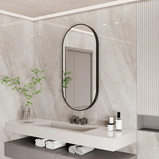 Modern Black Metal Framed Dressing Mirror Oval Bathroom Vanity Mirror for Wall