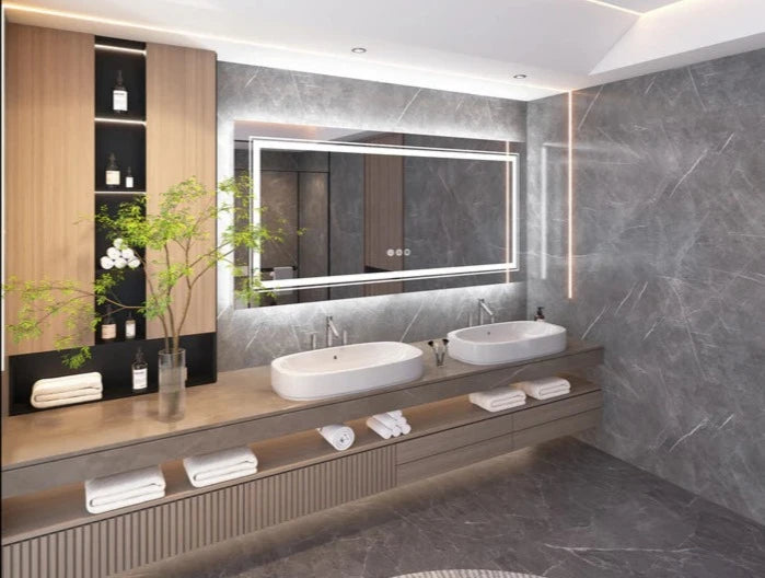 Elevate your Australian bathroom with our "Grand Illumination 160cm x 80cm LED Light Backlit Bathroom Mirror." More than a mere addition, it's an enhancement to your lifestyle, embodying eco-friendly technology, elegant design, and cutting-edge functionality. Discover a new level of luxury and convenience with this exquisite mirror.