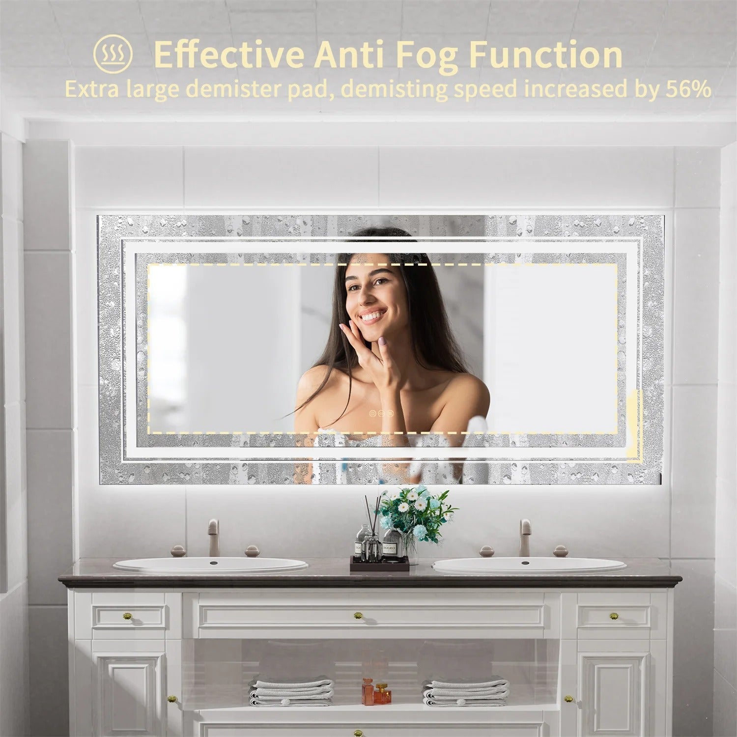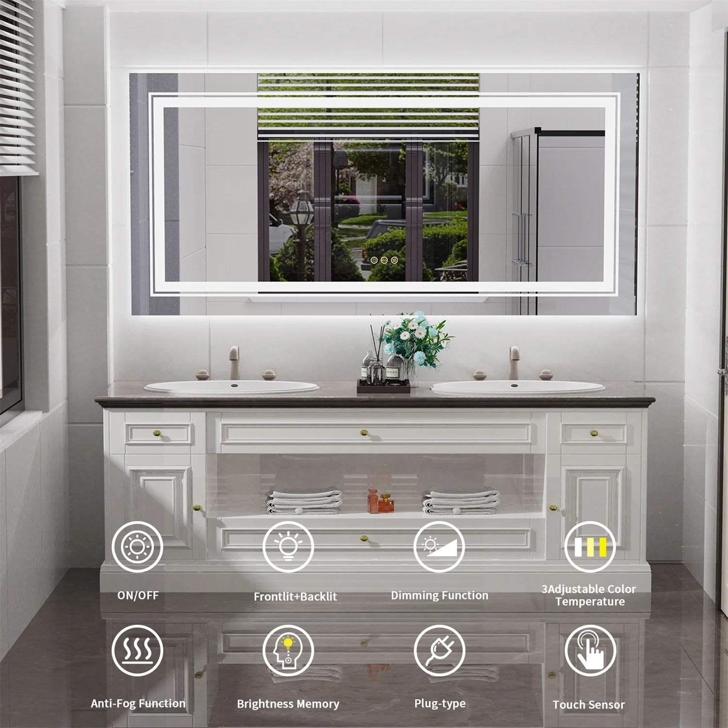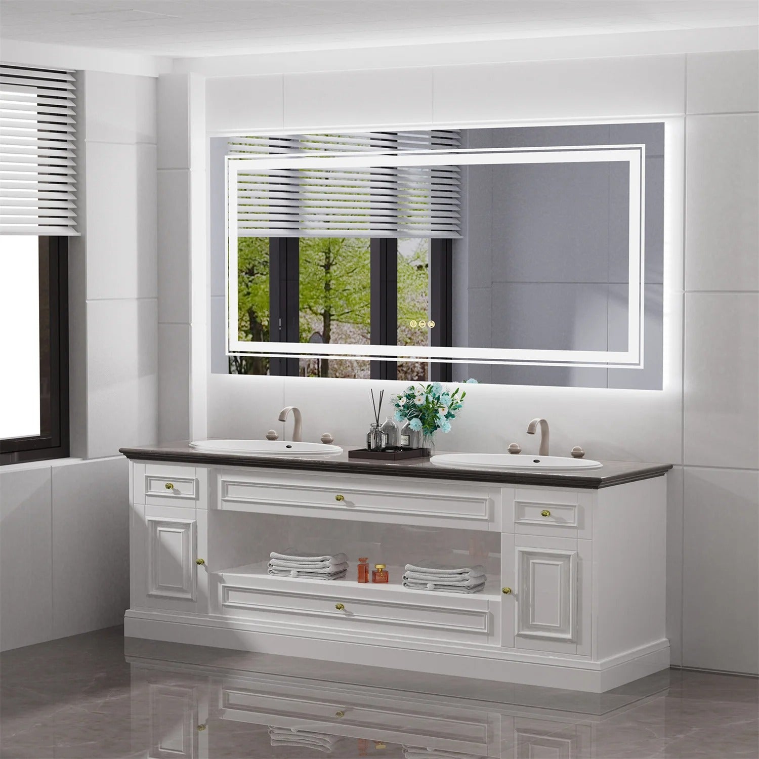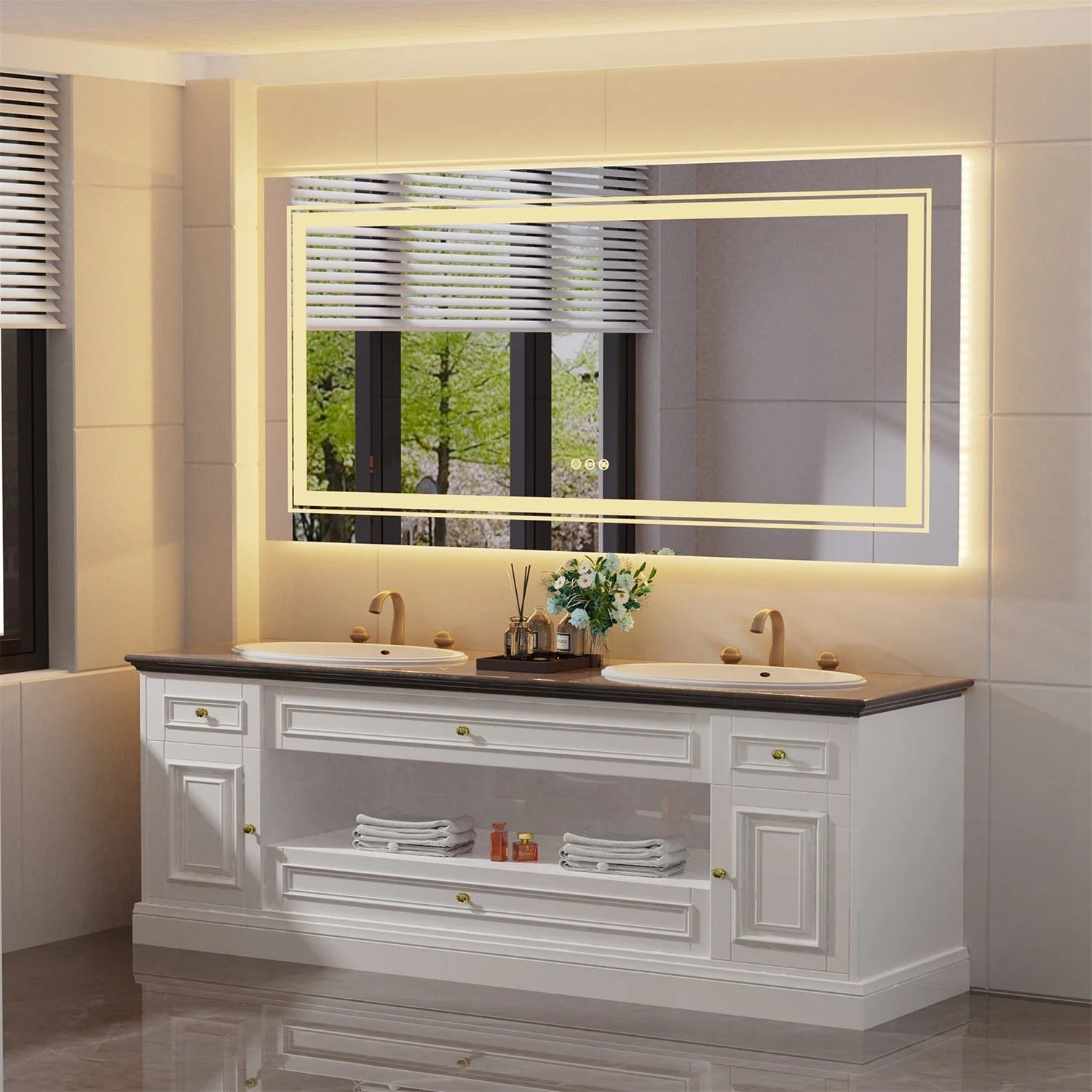 Extra Large rectangle LED Double Light Bathroom Mirror Dual Lights Anti-Fog Memory 3 Colors Dimmable