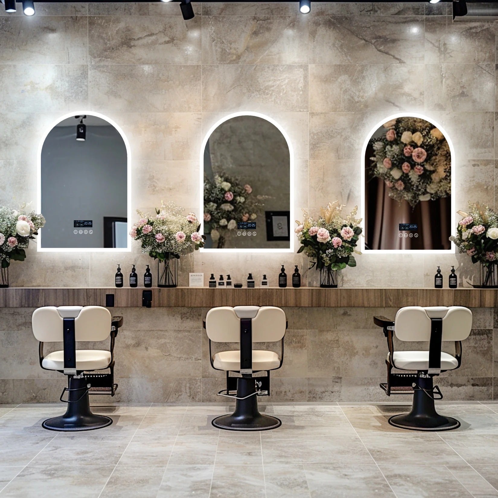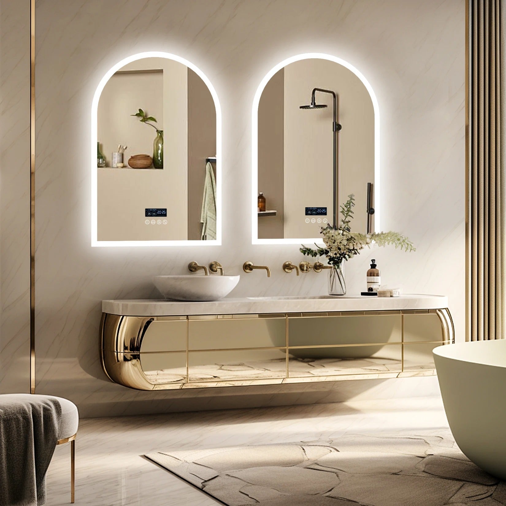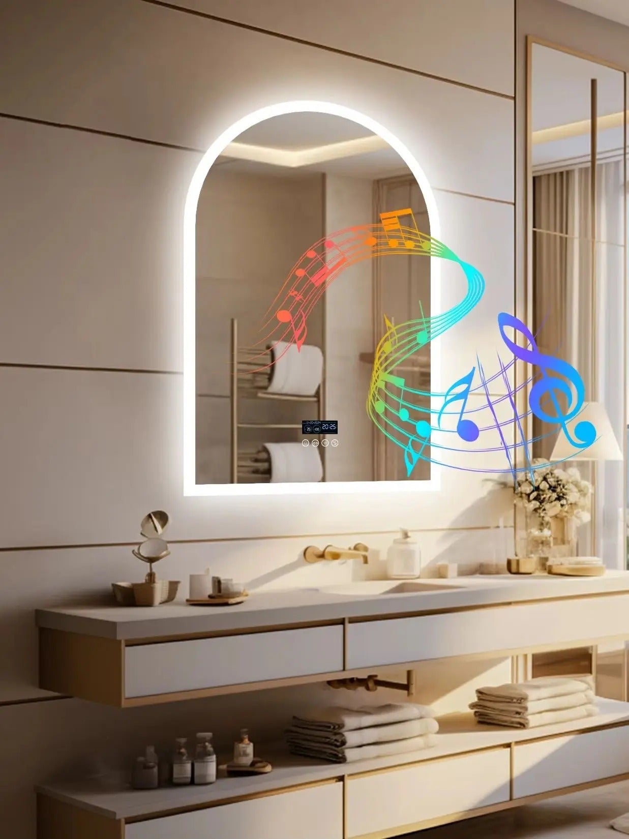 Arched LED Backlit Bluetooth Bathroom Mirror – Dimmable, Fogless Vanity Mirror with Time & Temperature Display