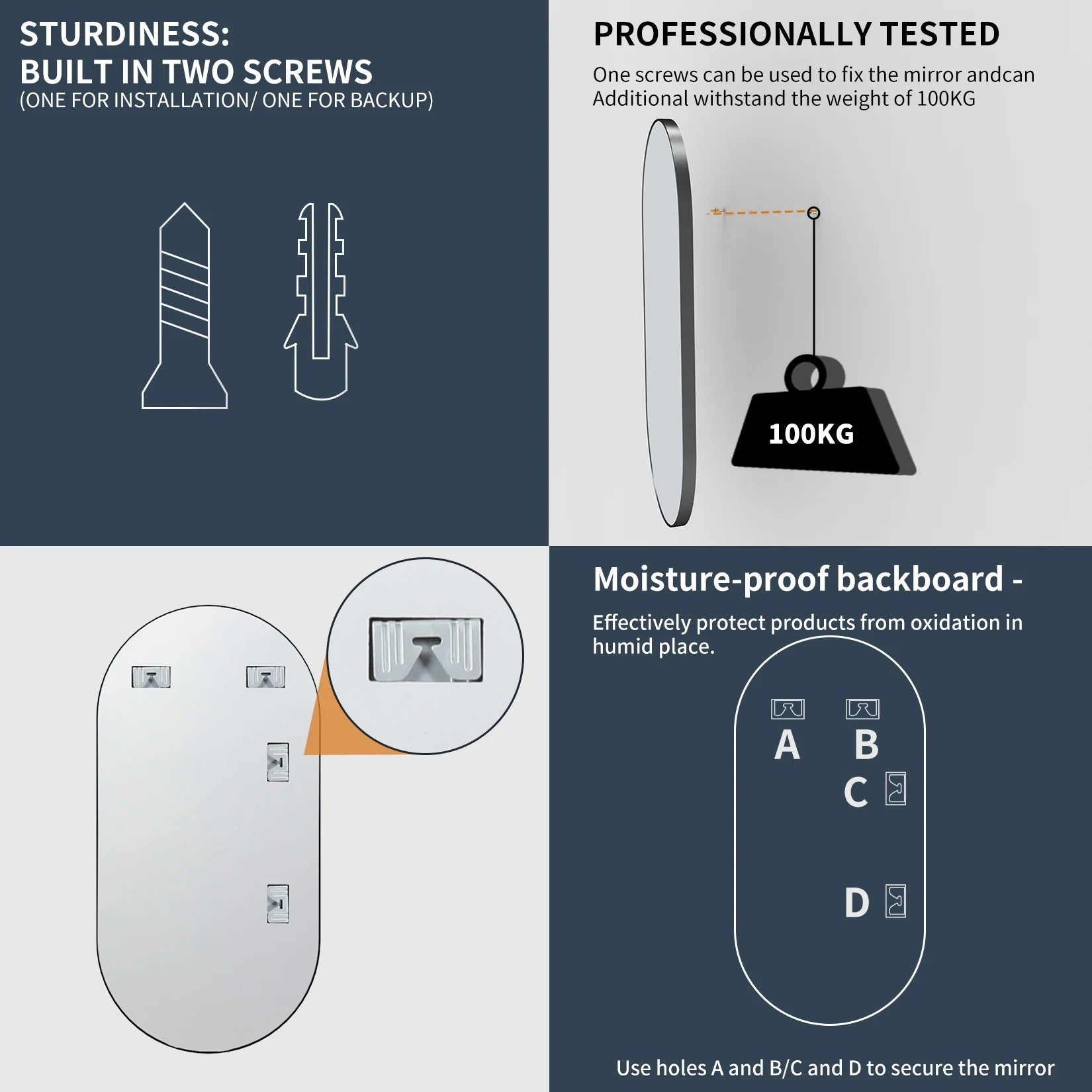 Sturdy and Safe Construction: The mirror's frame is reinforced with robust aluminum, enhancing its durability and safeguarding the glass against shattering. This design consideration ensures both the safety and longevity of the mirror, making it a dependable addition to your home.