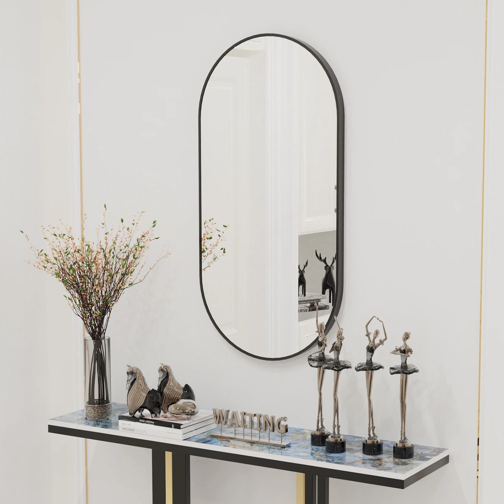 50X100cm Arched Oval Black Decorate Mirror Metal Frame for Bathroom, Entryway, Living Room Vertical & Horizontal Hang