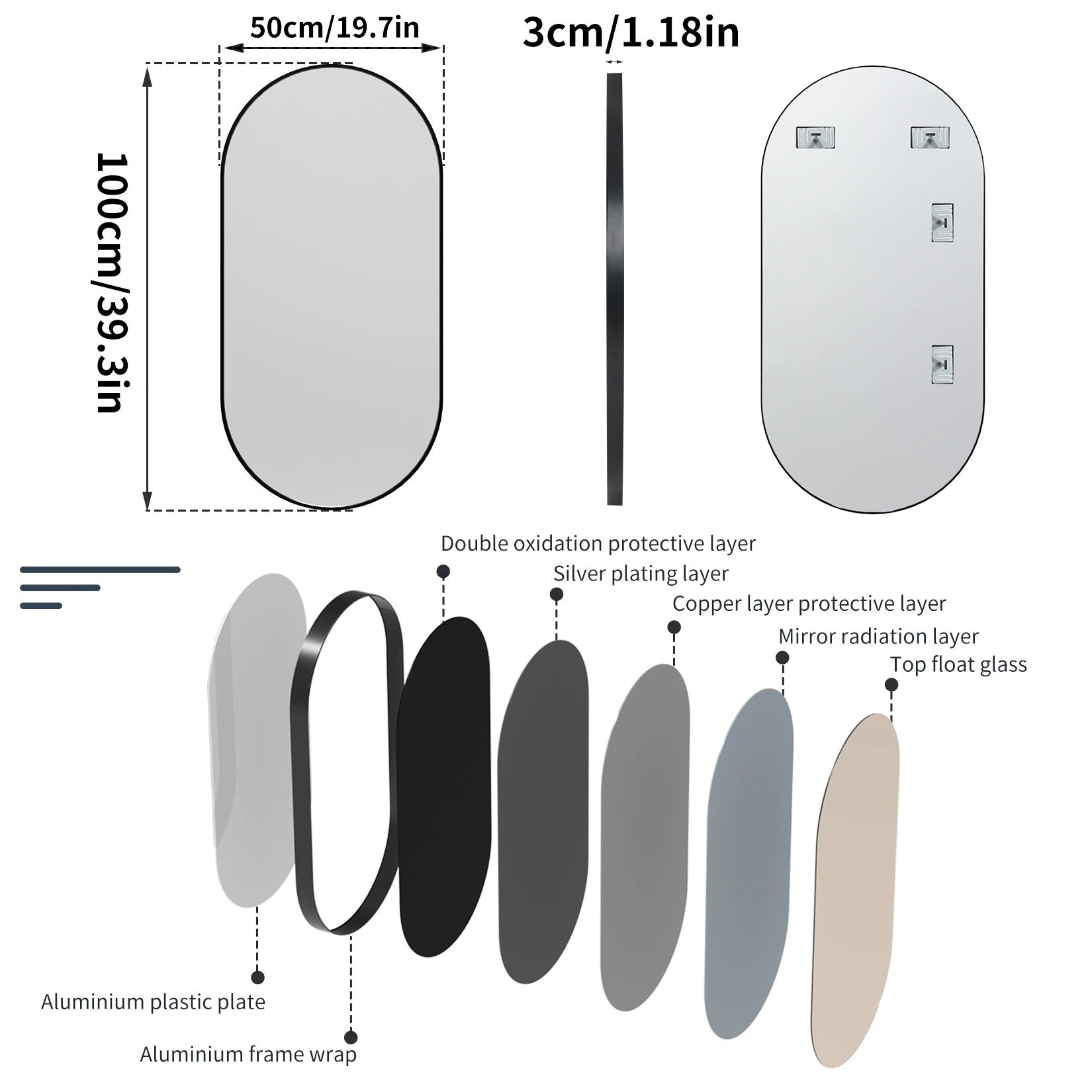 Sophisticated and Adaptable Design: The mirror's oval shape and classic black frame offer a seamless blend of contemporary simplicity and ageless elegance. Its dimensions of 50x100 cm make it an ideal addition for various spaces, be it your bathroom, entryway, living room, or any area seeking a stylish uplift.