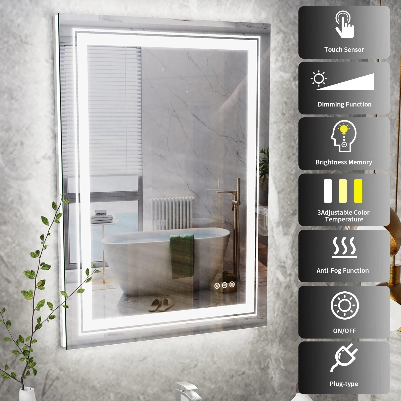 Effective Defogging Feature: The defogging function maintains a clear, moisture-free mirror surface, ideal for humid bathroom settings or after steamy showers.