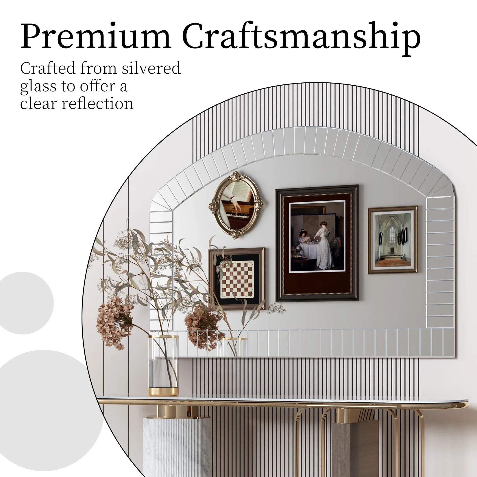 Extra Large Arched Bathroom Mirror – Silver Glass Venetian Accent Mirror with Bling Beveled Edge for Living Room Decor