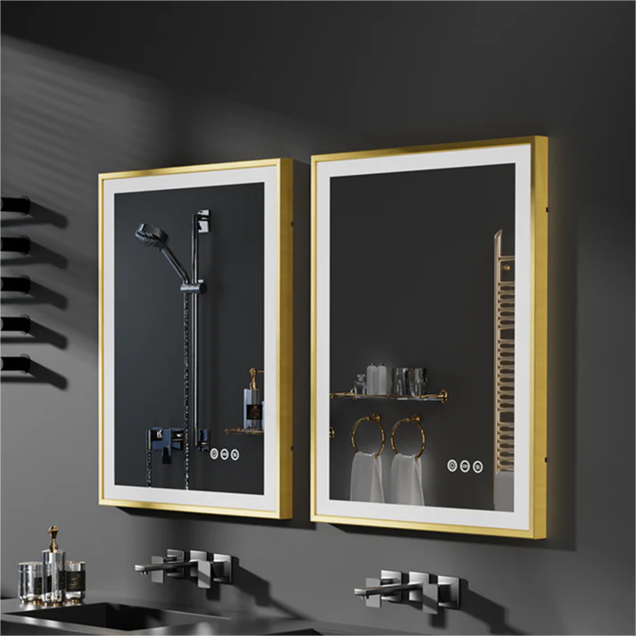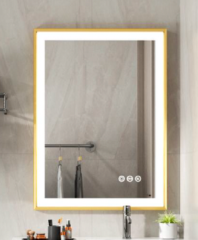 Rectangle Golden Aluminum Alloy Frame Front Light LED Smart Bathroom Illumination Mirror, Wall Mounted, Anti-Fog