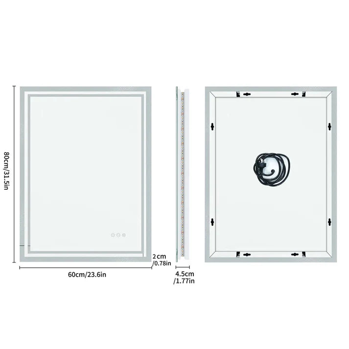 Intuitive Touch Control: The mirror includes three touch buttons, making it easy to adjust brightness levels (from 10% to 100%), switch among three light colors, and activate the anti-fog feature. The energy-saving design of the anti-fog function adds to the mirror's eco-friendly appeal.