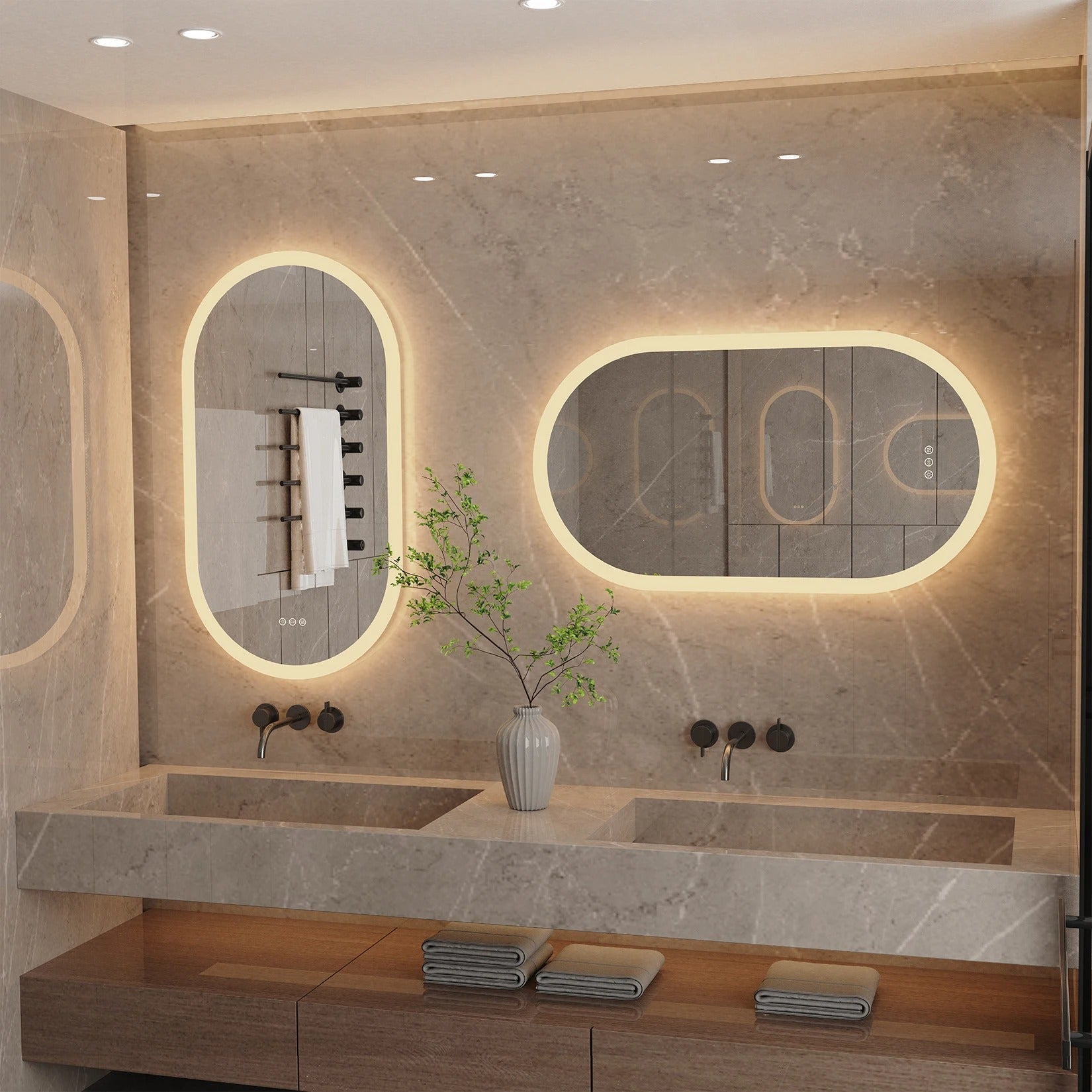 Oval Arched Large Backlit Light Oval Arched Large LED Makeup Bathroom Mirror, Anti-Fog, 3-Color Smart Mirrors