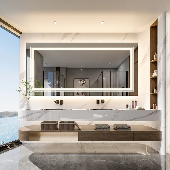 Introducing the extra Large LED Bathroom Mirror Illuminated Dimmable Vanity Mirror with Lights," a revolutionary addition to contemporary Australian homes, salons, and barbershops. This dimmable vanity mirror, featuring both front and backlit illumination, is designed to marry high functionality with elegant style, enhancing your grooming experience with a touch of luxury while championing eco-friendliness and advanced technology.