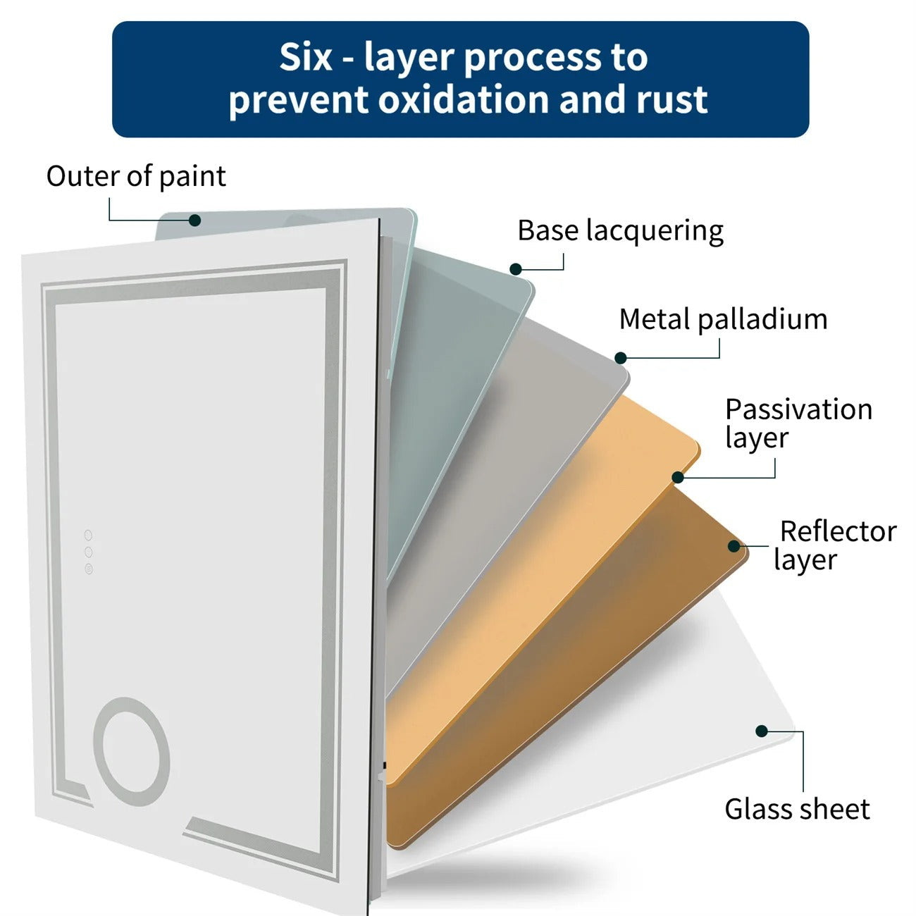 1.Glass:5mm HD Anti-explosion Copperfree Silvered Mirror CRI :≥95%