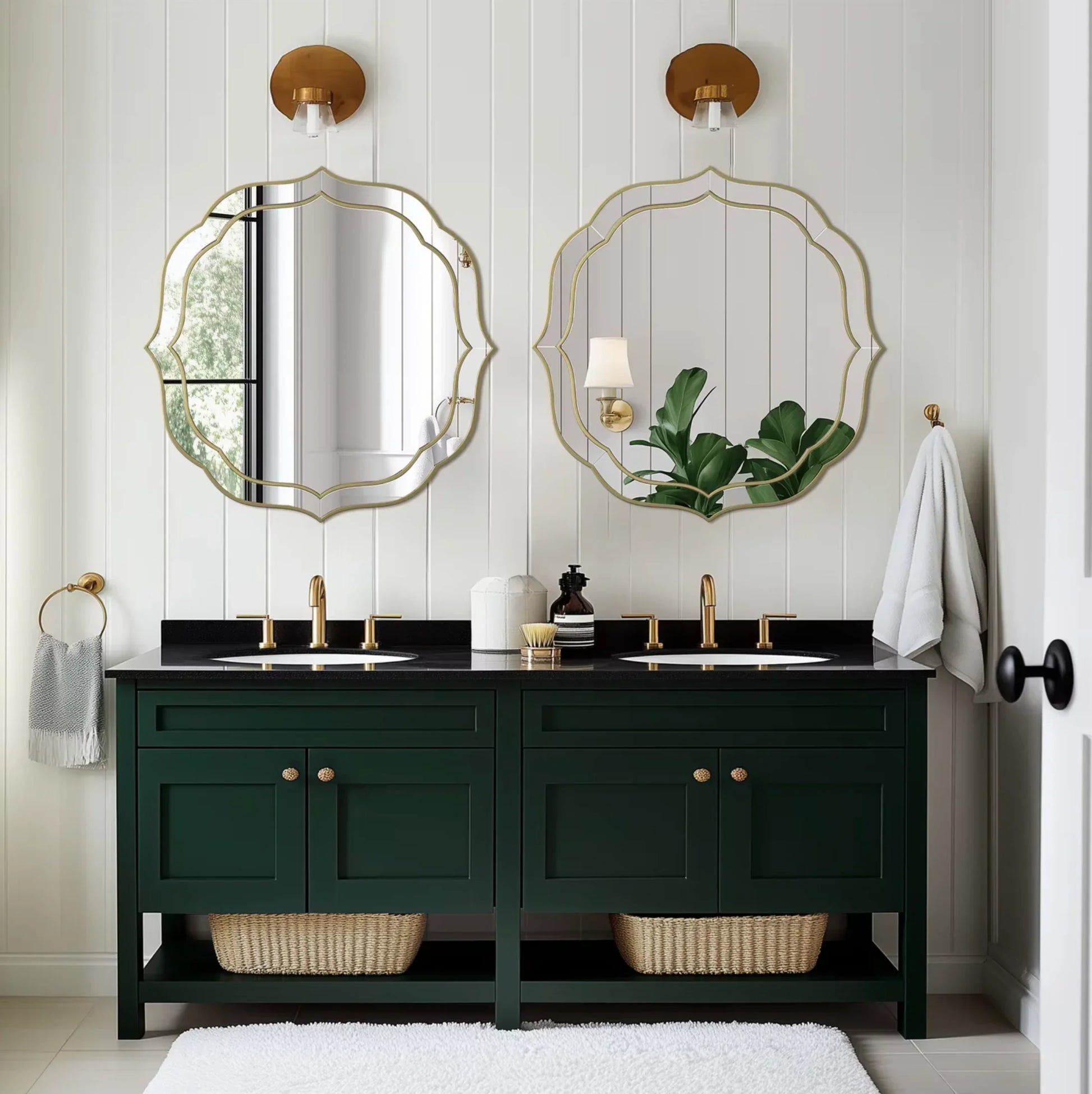 Modern Decorative Bathroom Mirror – Venetian-Style Silver Glass Mirror with Golden Rim & Beveled Frame for Bedroom & Hallway