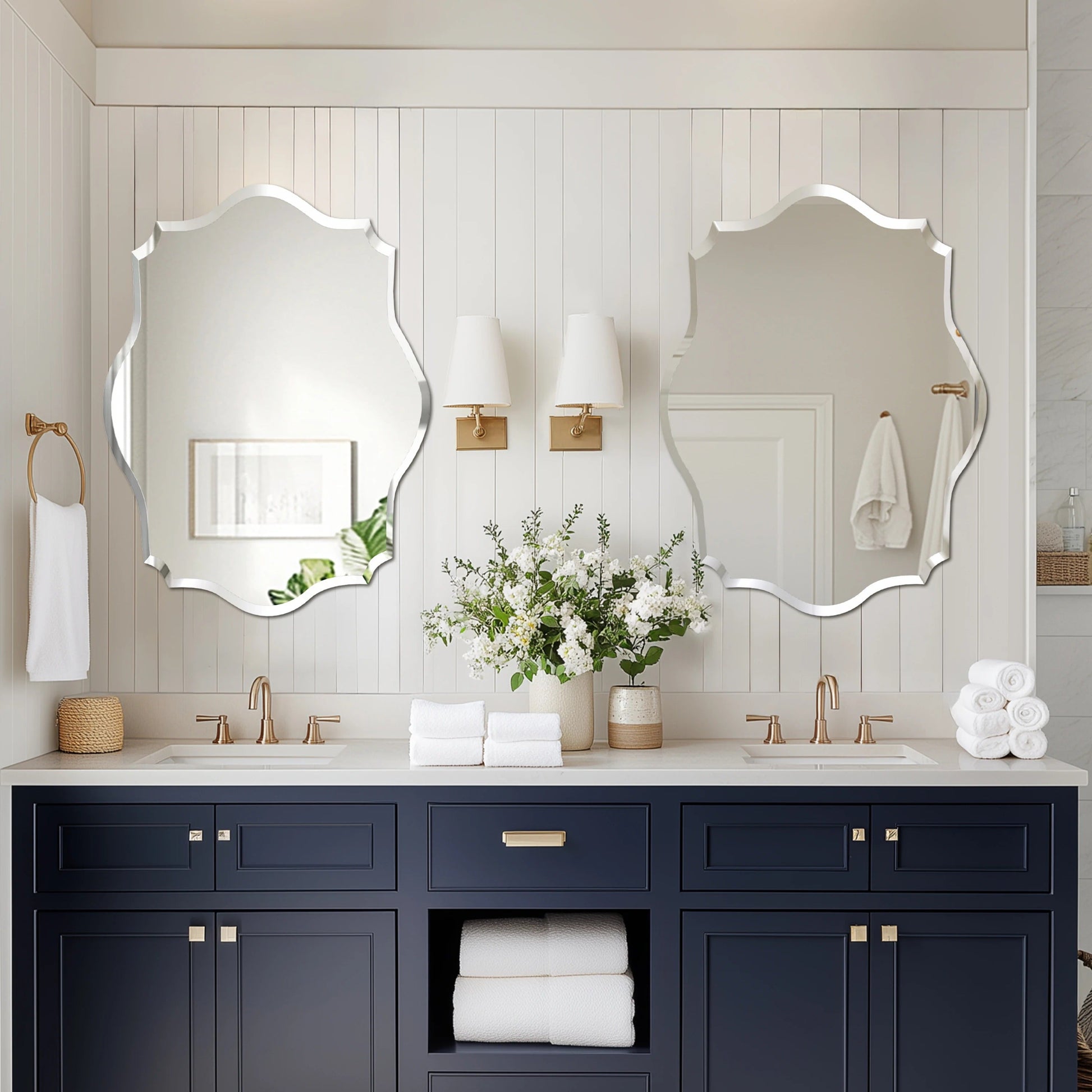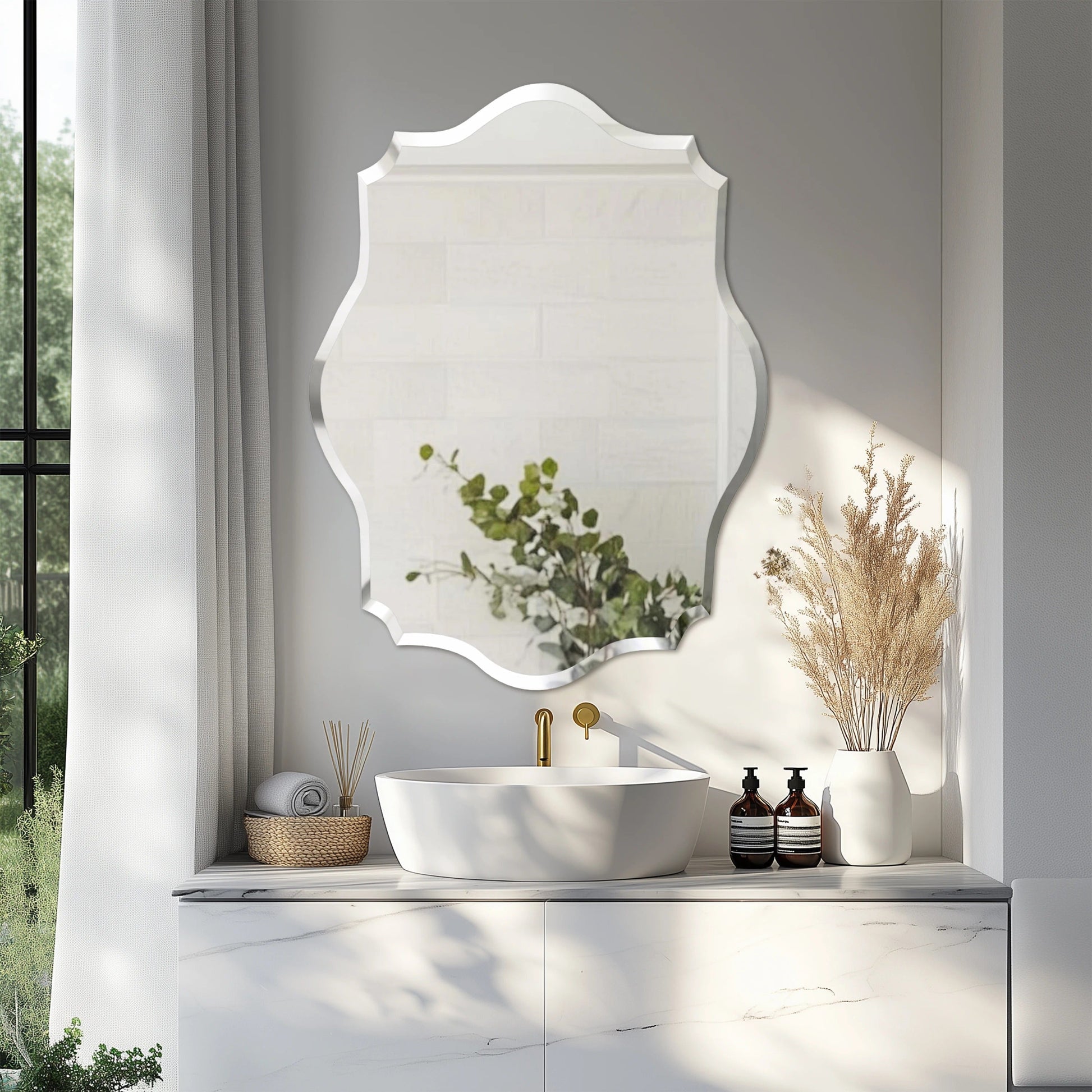 Scalloped Frameless Bathroom Mirror – Polished Silver Beveled Edge Mirror for Bathroom, Bedroom, Vanity & Living Room