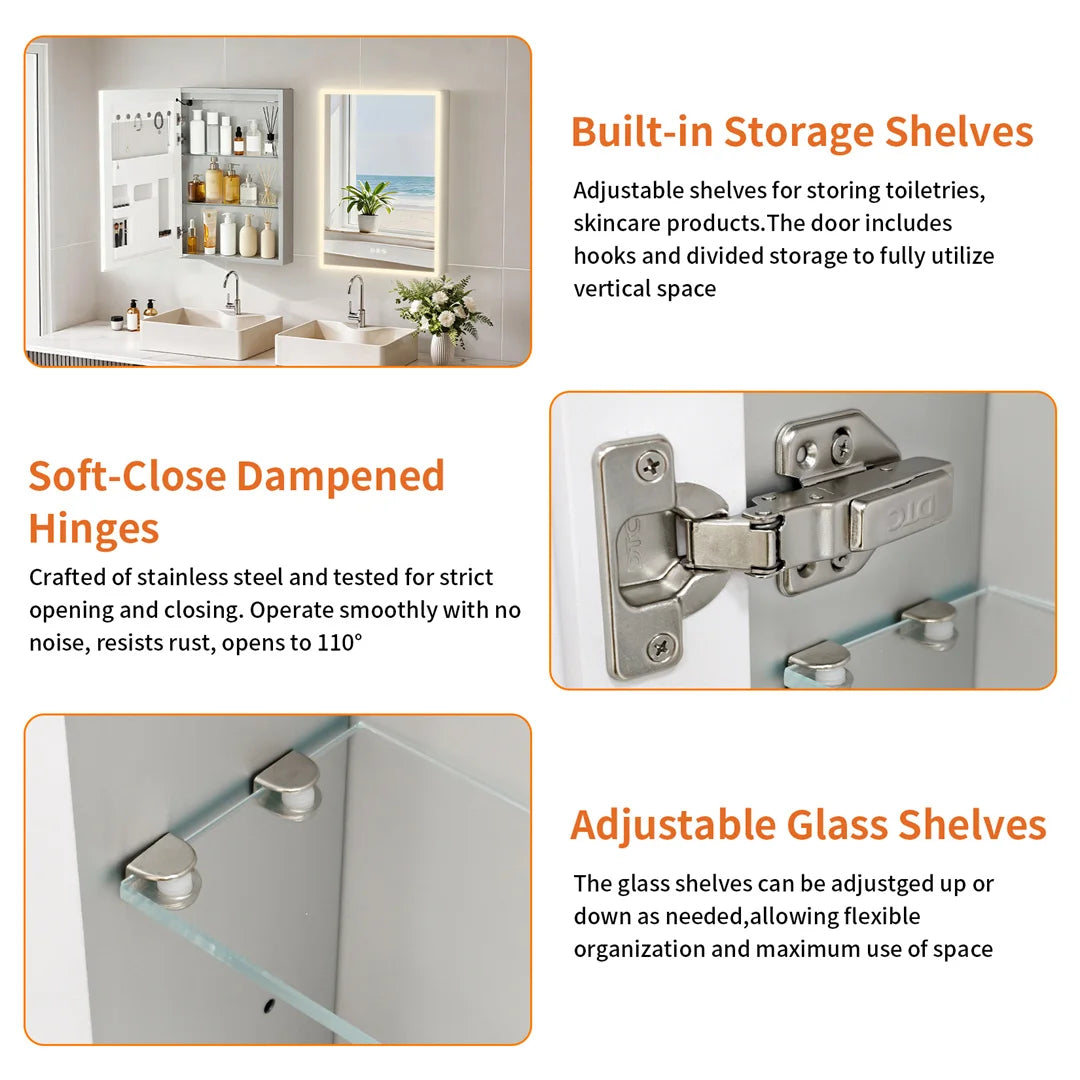 This mirror cabinet is the perfect mix of style and function! The sleek design looks amazing in my bathroom, and the hidden storage keeps everything tidy. The Bluetooth speaker is crystal clear, and I love streaming music while getting ready. The time and temperature display is a bonus that I didn’t know I needed. Delivery was super fast, and the customer service team was so friendly and helpful. Worth every dollar!